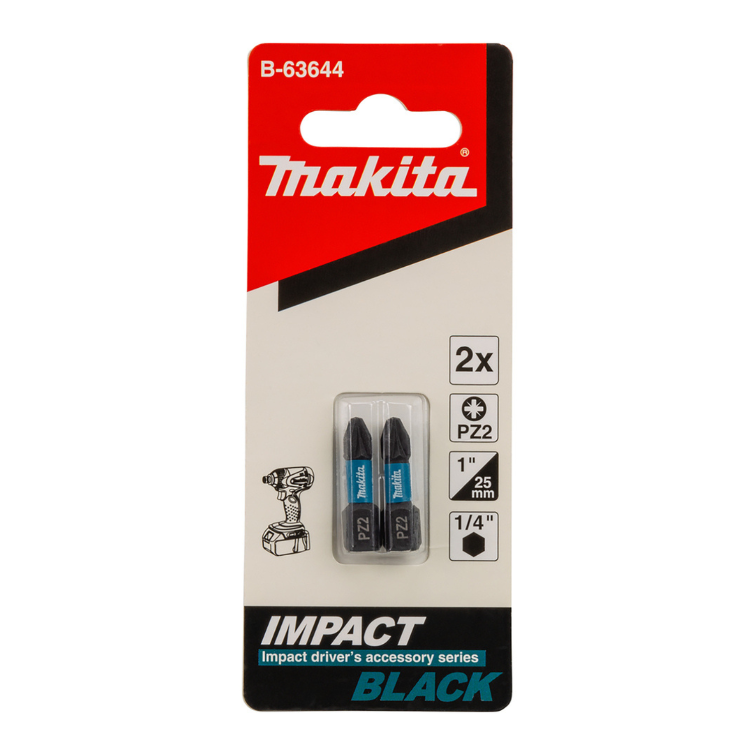 Makita Bit PZ2 Impact Black B-63644 PZ2 • 2 Stück • 25 mm