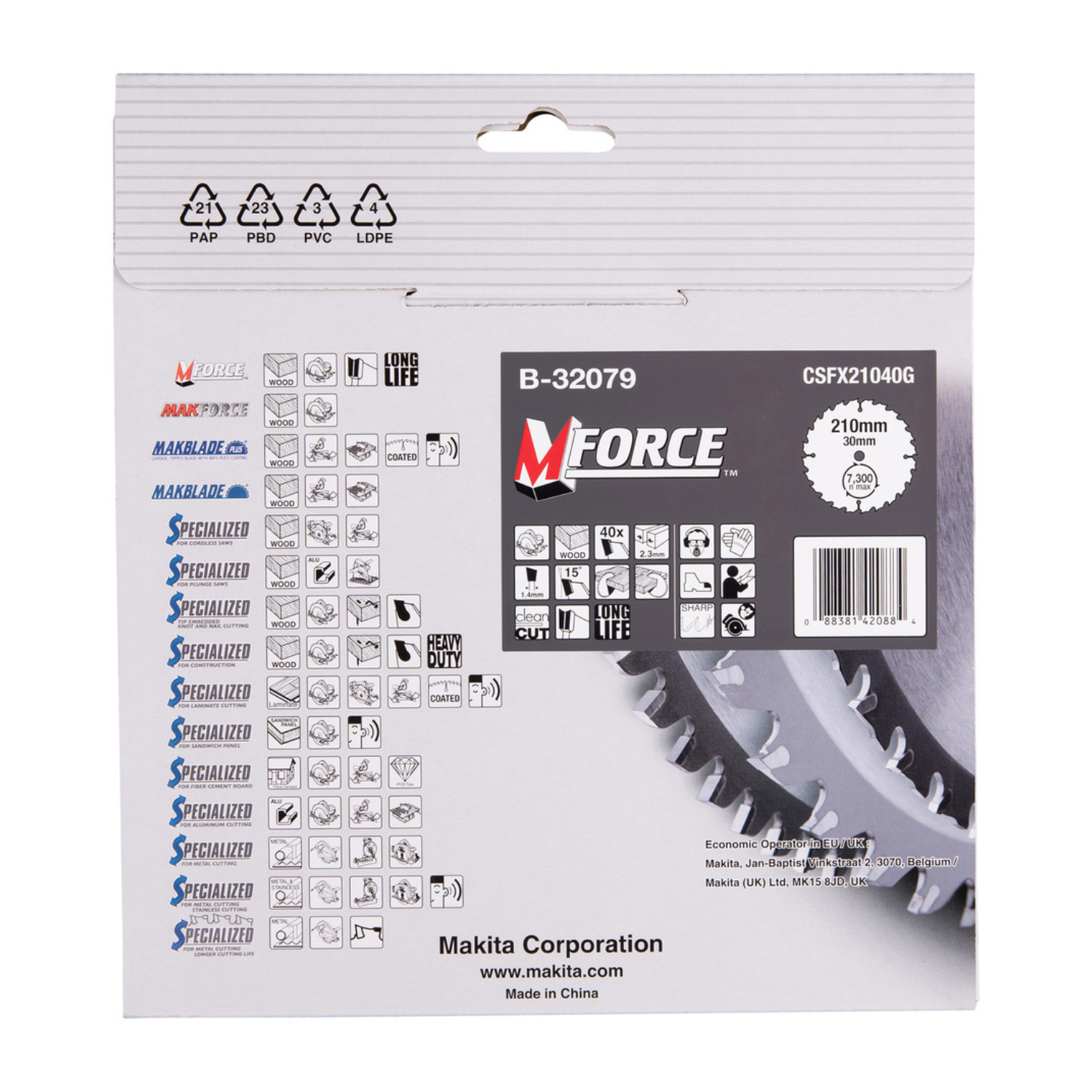 Makita Kreissägeblatt M-FORCE B-32079 210/30 mm • 40 Zähne • 1,4 mm • Holz
