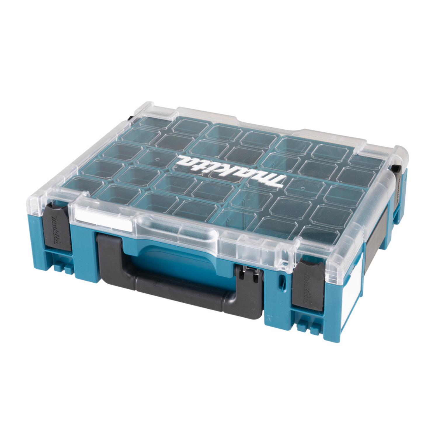 Der Transport wird durch einen Griff an der Vorderseite und zwei Griffmulden an den Seiten erleichtert. Vorne und an den Seiten können Etiketten zur Beschriftung eingeschoben werden. Der transparente Deckel ermöglicht zudem einen Blick auf die Kleinteile im Inneren. Lieferung inkl. Boxeinsätze (AnzahlxGröße) 6×1, 3×2, 2×3, 1×4, 1×5 und Etiketten-Set. Organizer entspricht der MAKPAC Größe 1.